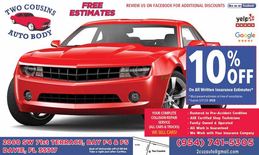 954-581-7980 Shuttle Service Available 3700 W. Broward Blvd. • Fort Lauderdale Monday-Friday 8:00am to 5:30pm Saturday 9:00am to 2:00pm ArcticAutoCenter.com