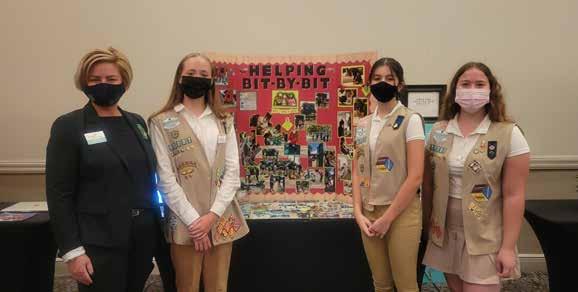Heather Hileman GSSEF Senior Vice President of Mission Delivery, Sarah McKenzie, Milana Silva, and Ashley Weiss pose with their project display.