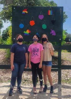 Ashley Weiss, Milana Silva, and Sarah McKenzie pose next to the Fidget Station in the Sensory Paddock.