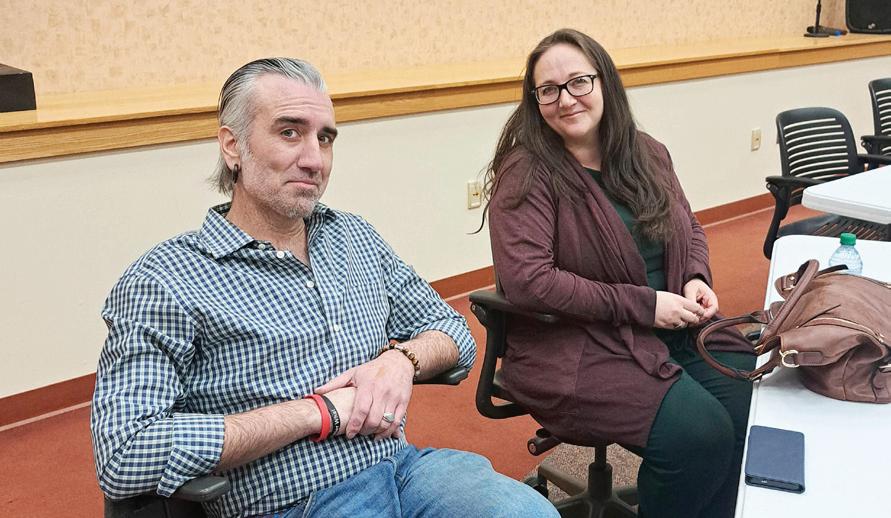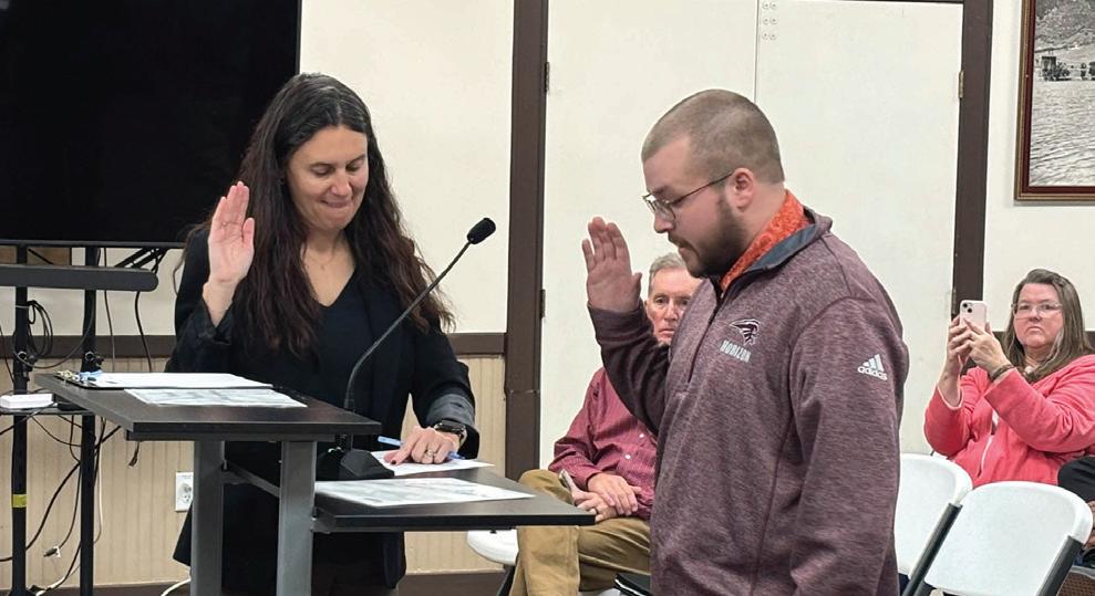Above: At the Feb. 12 meeting, the Palmer Lake Board of Trustees unanimously voted to appoint John Marble to fill a vacancy on the board. His term ends in December 2026 and will be filled at the next regular election in November. At the interview held at a workshop before the regular meeting, Mable said he was studying political science in college. Town Clerk Erica Romero administered the oath of office to Marble. From left are Romero and Marble. Photo by James Howald.