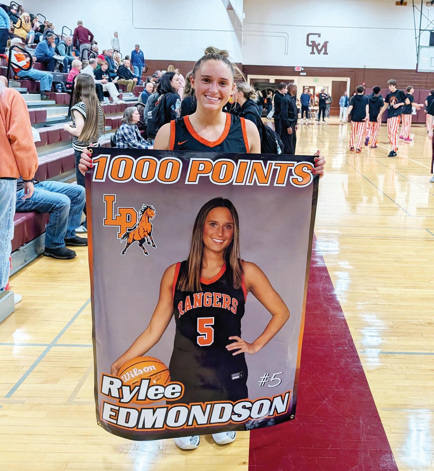 Above: During a varsity basketball game Feb. 6 at Cheyenne Mountain High School, Rylee Edmondson, a senior at Lewis-Palmer High School, scored her 1,000th point. The game was stopped to recognize this accomplishment.