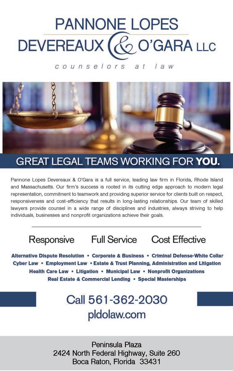 16 BUSINESS DIRECTORY CRUISES Cruise and Travel Ventures LLC ............ 5 ESTATE PLANNING Pannone Lopes Devereaux & O’Gara .................................................. 3 LAWYERS Pannone Lopes Devereaux & O’Gara .................................................. 3 LITIGATION Pannone Lopes Devereaux & O’Gara .................................................. 3 MORTGAGES Cross Country Mortgage ..................... 11 NON PROFIT Red Cross .................................................... Front Inside Cover, Back Inside Cover TRAVEL Cruise and Travel Ventures LLC ............ 5