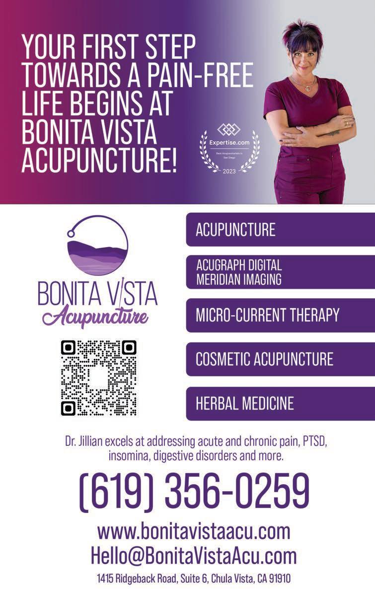 20 BUSINESS DIRECTORY ACUPUNCTURE Bonita Vista Acupuncture .................... 13 ADDICTION TREATMENT CENTER AToN Center ............................................ 9 AUTOMOTIVE SERVICE & MAINTENANCE Johns Automotive Care .......... Back Cover CHINESE MEDICINE Bonita Vista Acupuncture .................... 13 NON PROFIT Red Cross ....................... Front Inside Cover, Back Inside Cover PAIN MANAGEMENT Bonita Vista Acupuncture .................... 13 PERSONAL INURY Law Office of Barry Pasternack ............ 3 PORTA POTTY RENTALS