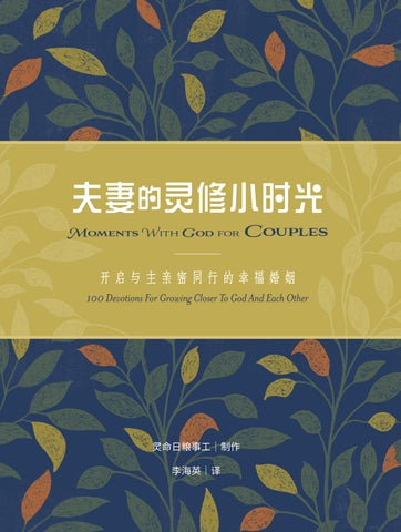 我們在結婚第十年時發生了一件事 , 這件事改變了我們 夫妻關係的發展 。 多年來 , 我們一直渴望擁有共同的 靈修時光,卻始終無法找到實踐的途徑。每天一早我都自己 出門,蘿莉則在孩子們醒來之前珍惜寶貴的睡眠;和孩子們 一同吃晚餐、催她們去洗澡和陪睡,也把整個晚上占據了。