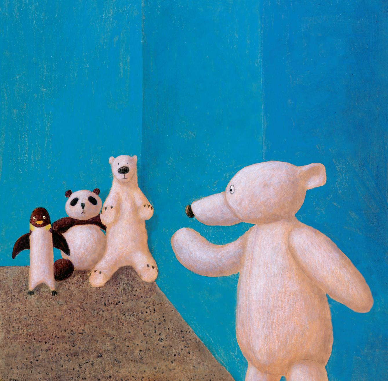 Just Teddy tried to snuggle with the polar bears, but there was no space for him.