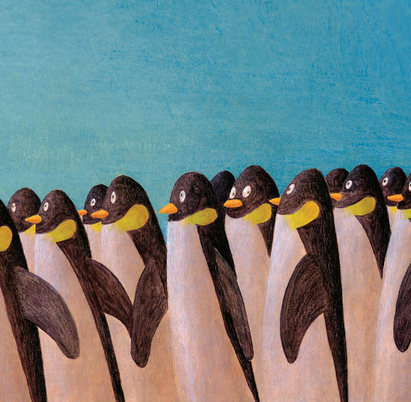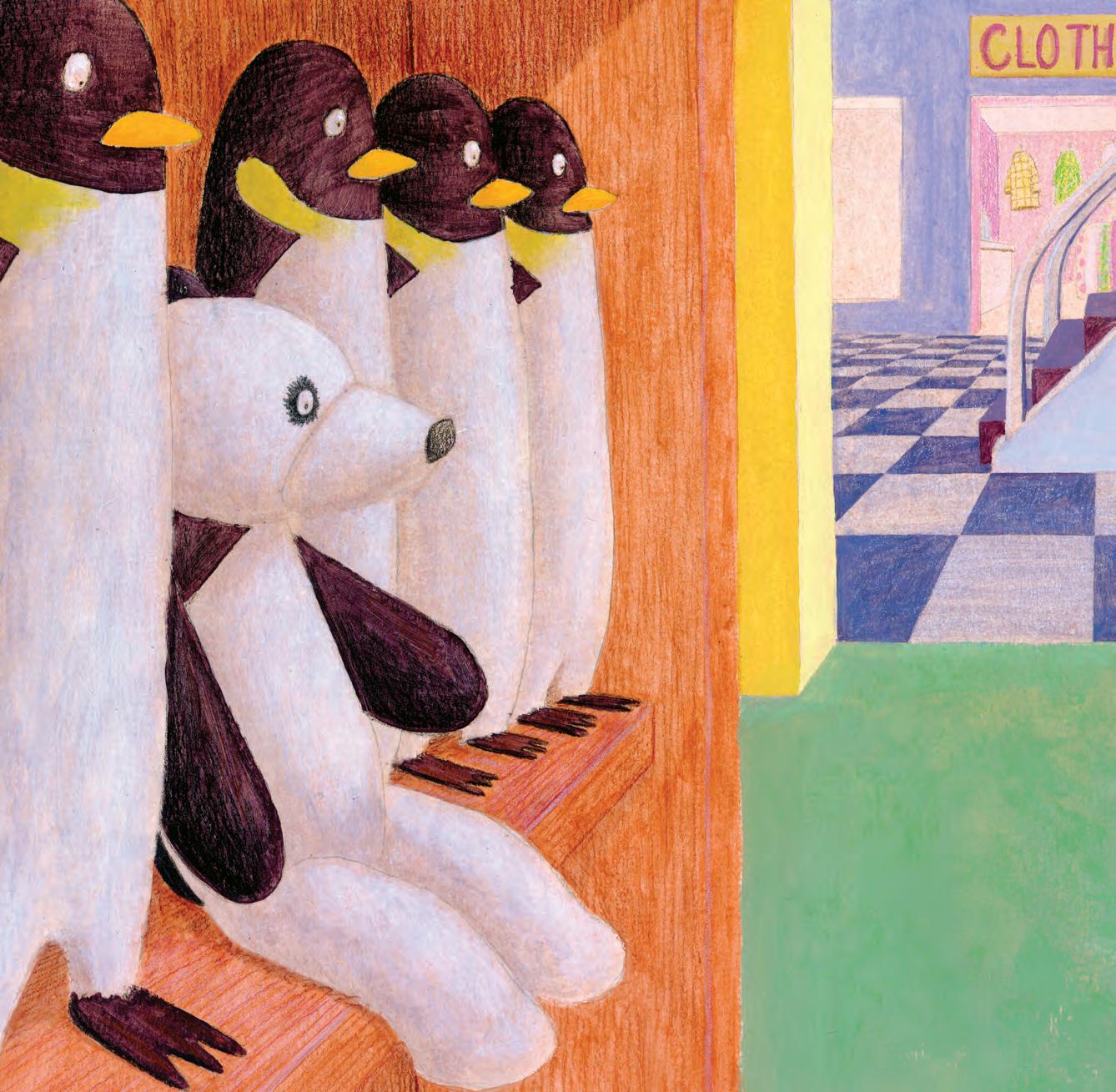 “What’s going on?” a voice cried out from a box nearby. Just Teddy peeped in and saw emperor penguins. He told them what had happened.