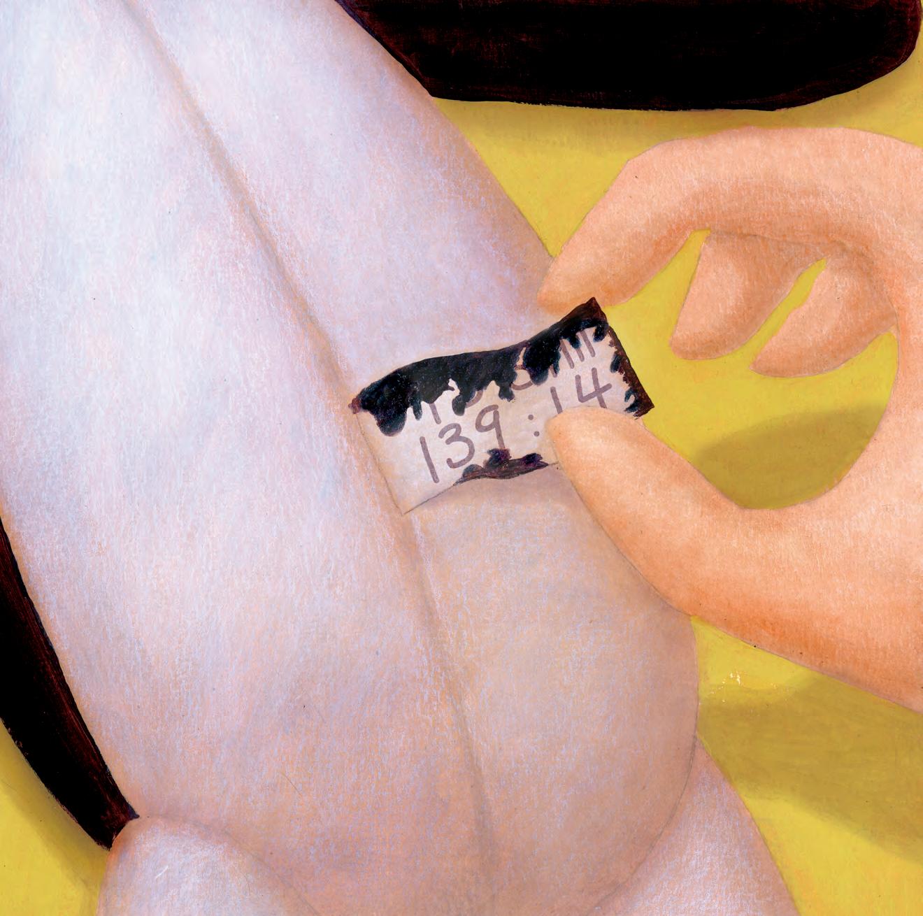 She tried to read the label on his tummy but it was smudged with ink. She rubbed hard at the label with soap until finally, she saw some numbers.