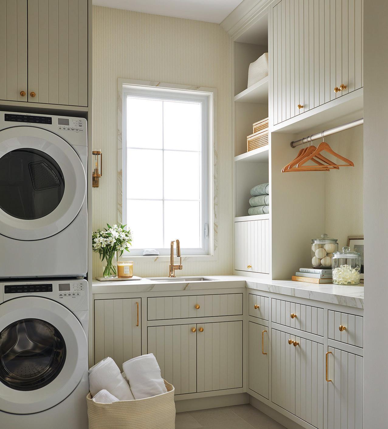 The focus of the scullery is to maximize efficiency and functionality. However, the materials, textures, finishes and palette should be harmonious with the overall aesthetic of your home. Cabinetry material should withstand the wear and tear of pots, pans and constant use – ideally, a solid wood. If you opt for a painted finish, darker colours conceal more spills. Countertops in the scullery should be resilient. The backsplash has to be wipeable with minimal grout and flooring must be easy to sweep and mop. Appliance selections should be durable and reliable. Lighting should be bright and functional, and always include a window for some natural light. OH