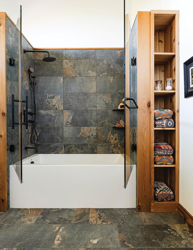 138 Home & Designer This newly-built home showcases a warm, inviting chalet-inspired interior by Jane Lockhart Design.