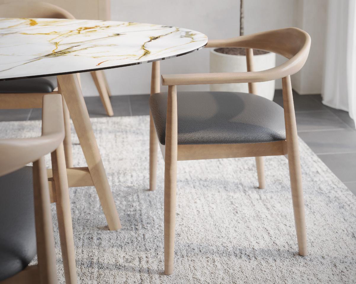 Ginsberg features a sleek 8” tuxedo arm that flares at the front and gently wraps around the frame for a distinctive silhouette.