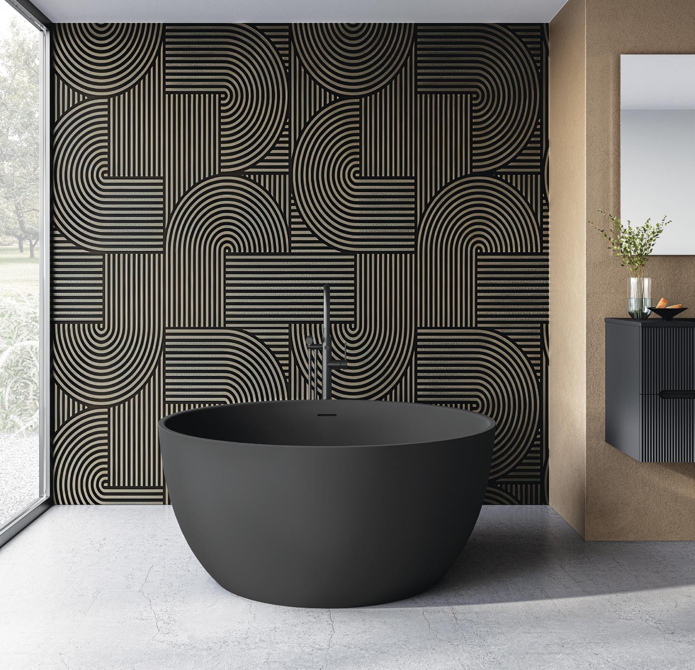 The StoneTouch Centerpiece bathtub has a 330-litre capacity, with an integrated overflow and colour-matched pop-up drain. Its eye-catching round shape and contemporary aesthetic make it a focal point in any bathroom.