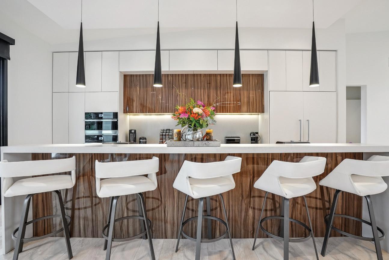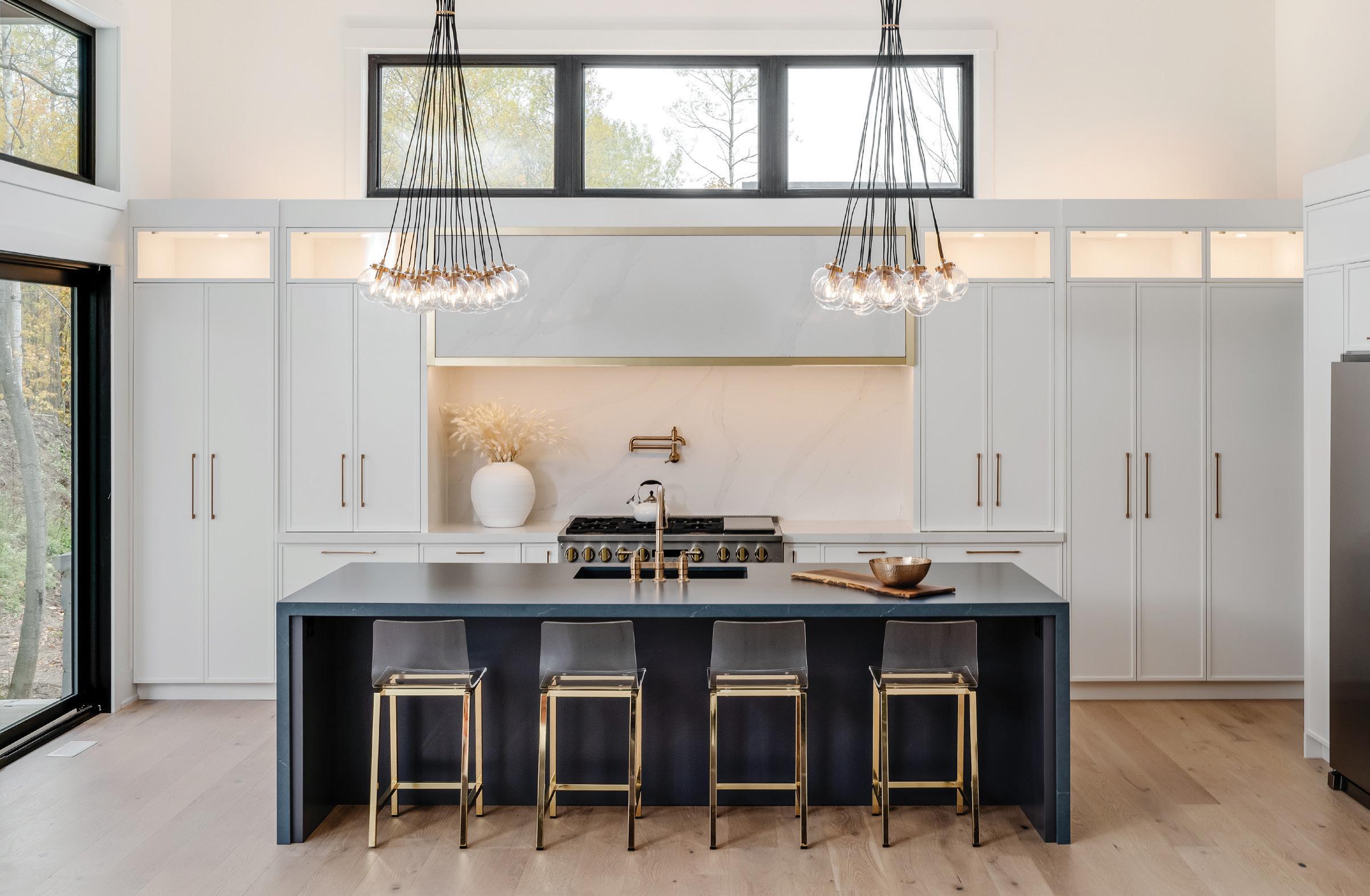 Designer Kaitlyn Cruickshank got to live at her own home while building a spec model home for a proposed in-fill subdivision in Barrie. That gave her full freedom to design the luxurious two-storey home around an outstanding kitchen that is open to both the family and dining rooms, with a nearby bar.