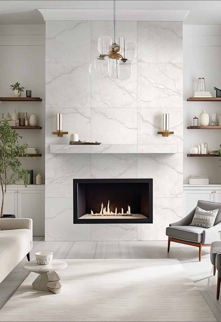 fireplace with a gas insert was replaced with a more modern installation that has been getting regular use since the renovation. The stippled ceiling was also scraped flat.