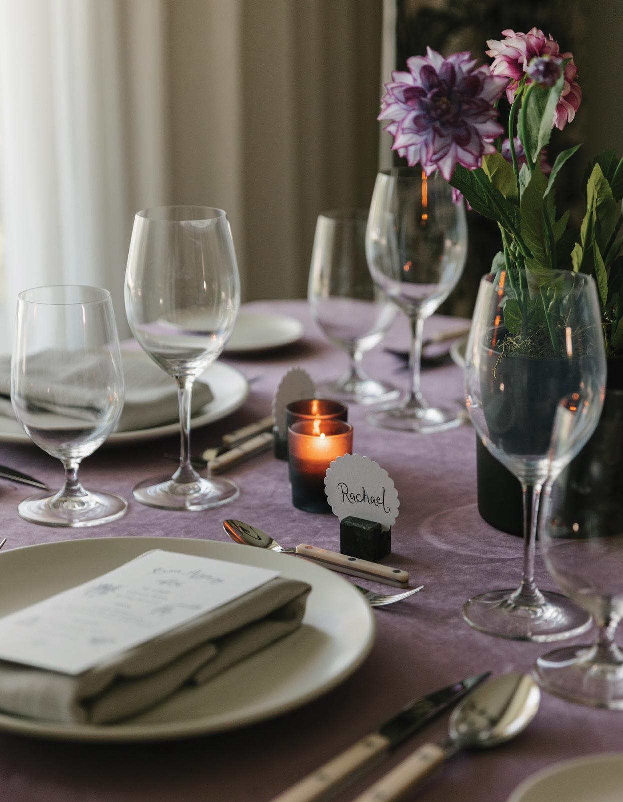 Create a cosy atmosphere for your guests the moment they arrive. Chances are you’ll be chatting for a couple of hours, so give your furniture a fluff and add some extra pillows and throws for comfort. Lighting candles or igniting your fireplace will provide a relaxing ambience to your space. Cue the soft background music.