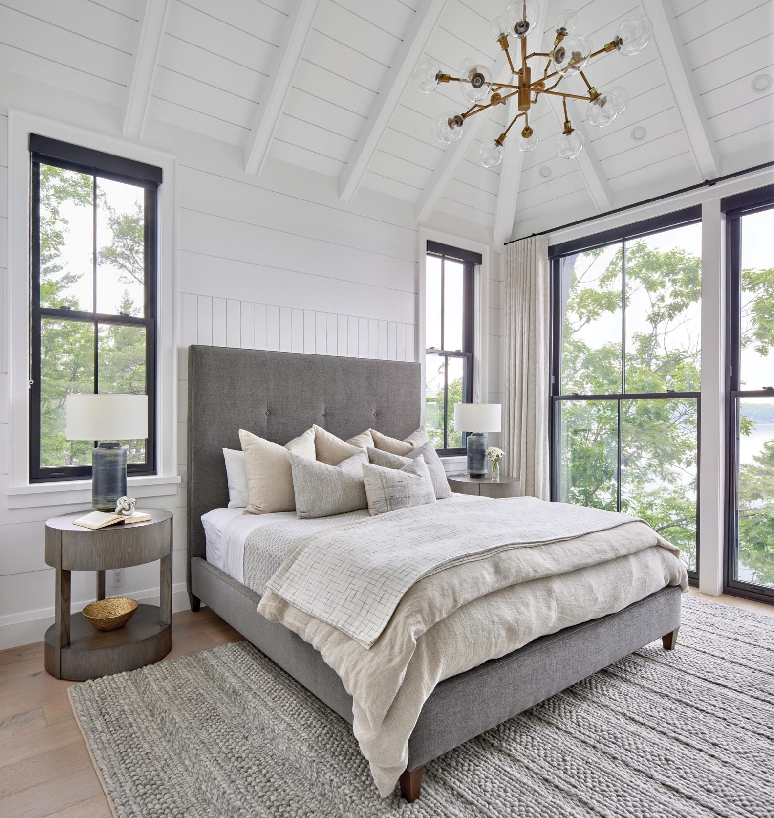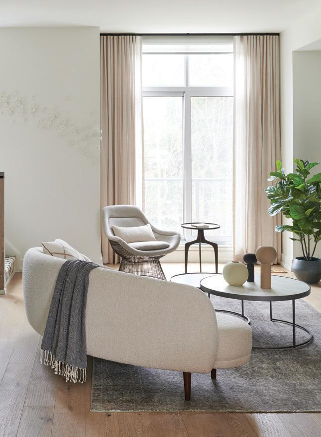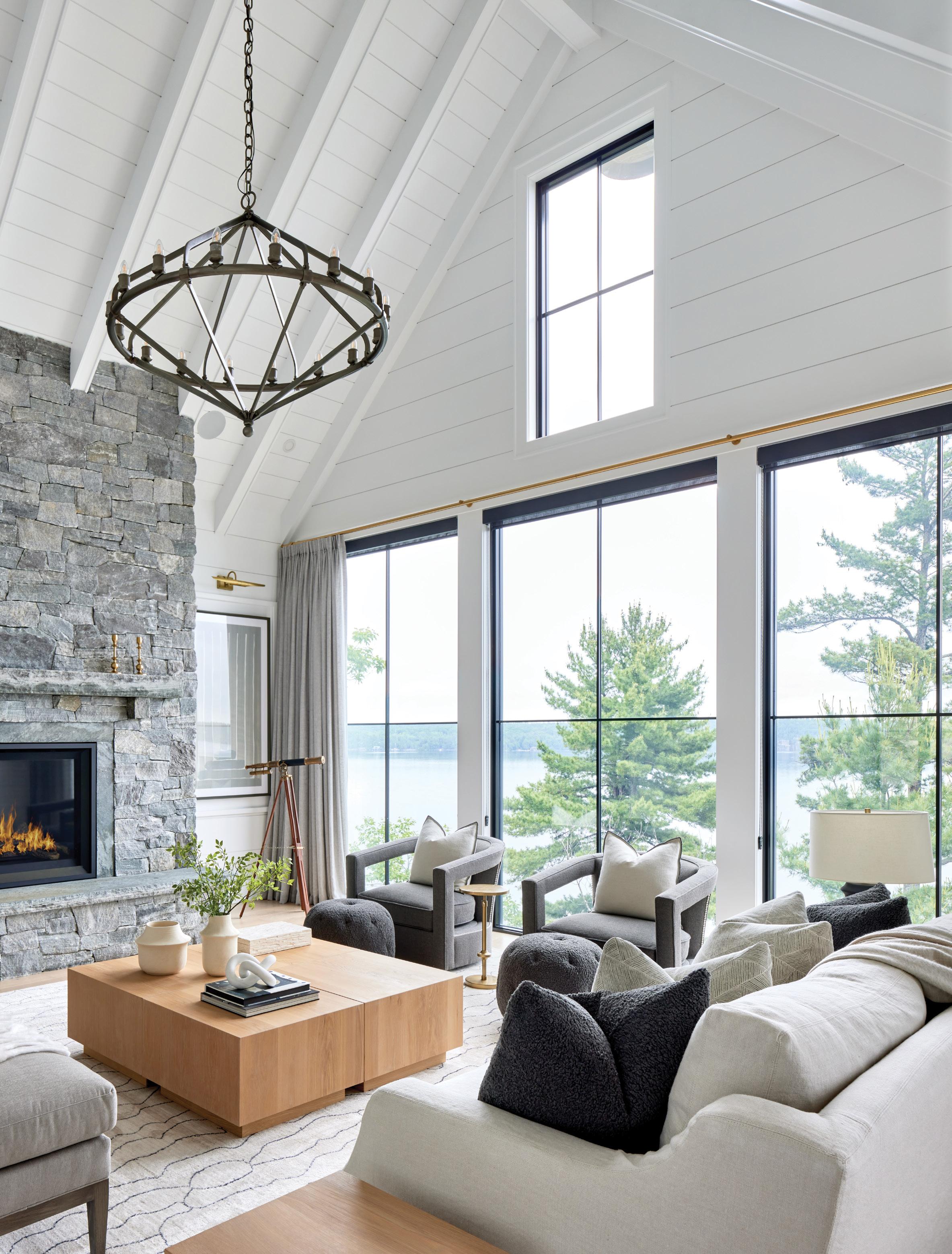 AOur first feature home showcases a soaring Muskoka cottage designed by Sophie Clapperton of Sophie Clapperton Designs (page 36). A stunning use of space, light and natural materials, the cottage blends seamlessly with its surroundings, offering a luxurious yet cosy retreat that epitomizes the beauty of lakeside living.