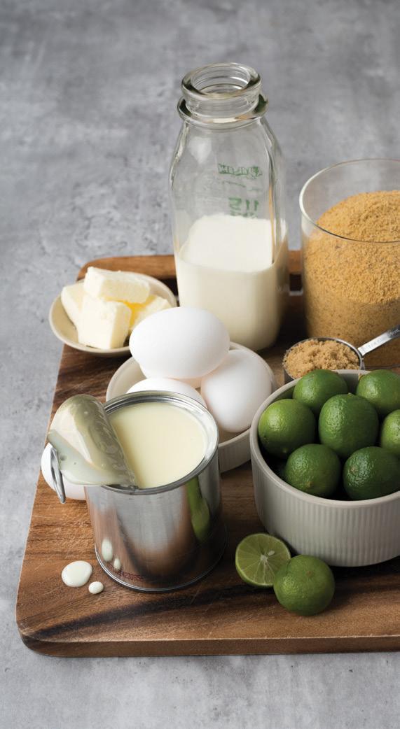 Prepare the filling by mixing the egg yolks, lime zest, lime juice and sweetened condensed milk.
