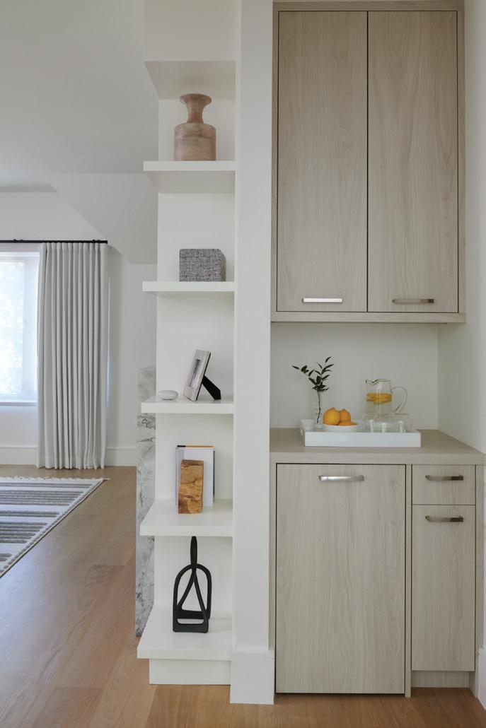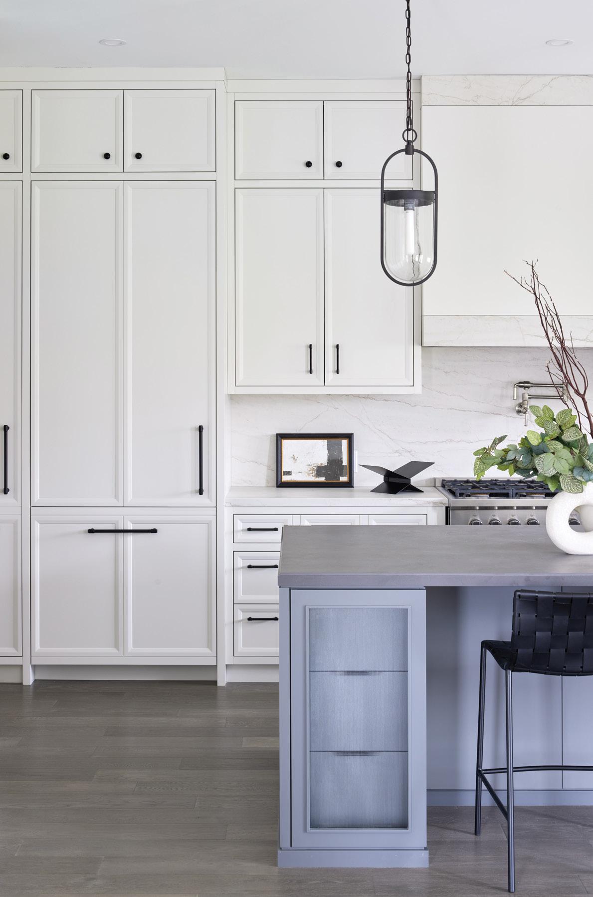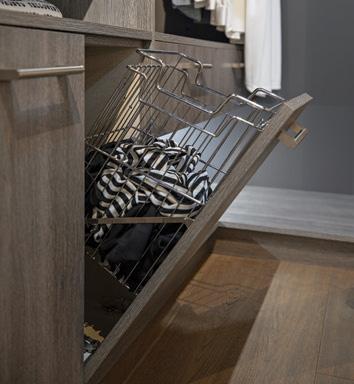 Installing pull-out laundry bins concealed behind cabinetry keeps things looking tidy.