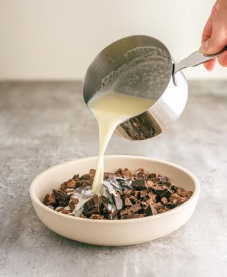 Carefully pour cream and butter mixture over the chocolate. Stir to melt.