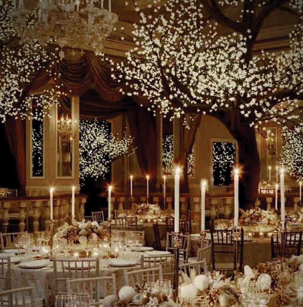 Immerse yourself in the ethereal beauty of these grand and elegant illuminated trees.
