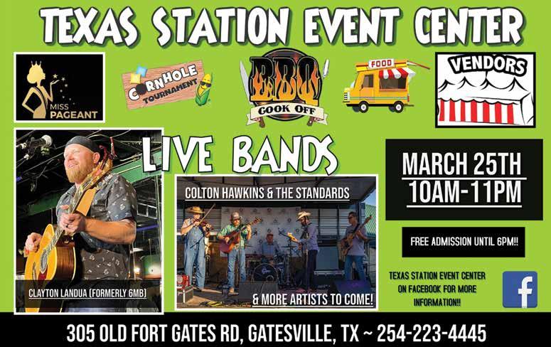 March 18 - Food Truck Rodeo at Comanche City Park, 11AM. One of Comanche's biggest events of the year! This event will be held at Comanche City Park and offers a lot of family fun. Enjoy a range of food from 10 different food trucks, and shop the vendors, kids can enjoy the children's activities, and the main attraction... live music all day with the next upand-coming musical artist of Central Texas as the headliner!