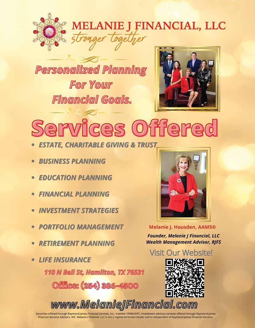 “Learning what is important to my clients enables me to devise a plan that will help them pursue financial freedom through all aspects of their lives and will allow their legacy to continue on in their families lives,” Melanie says. “I keep their goals and needs at the forefront of every decision. My clients are successful people – from all walks of life. But they worry that they might not be making the very best decisions when it comes to living a rich and full life. If I can take the financial worries away from my clients, then I am successful. My clients are like a part of my family and I treasure each and every one of them. Truly, we are stronger together.”