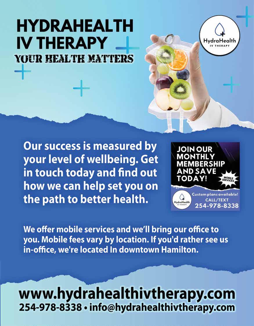 Johnny and Teresa Clepper HydraHealth in downtown Hamilton is bringing change to its patients' lives 7 days a week through its many infusion and injection options. A relaxing 20 to 45 minutes could have you hydrated and improve your health with no aftercare restrictions like we see with, say, giving blood.