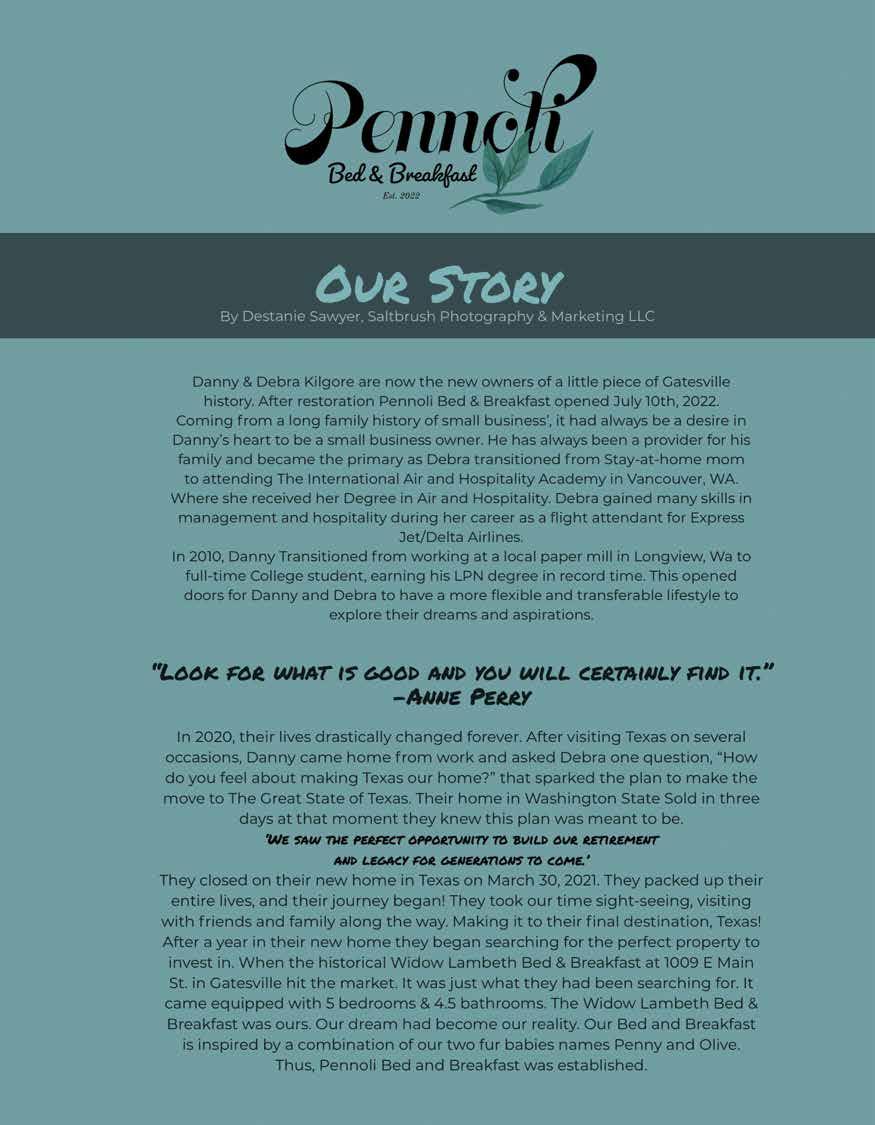 ing in a light that only helps to accentuate the room's beauty. Keeping that period feel, the furnishings are solidly built, early to mid-twentieth century pieces. Bringing this all together gives the guest a unique experience not often found in most smaller towns.