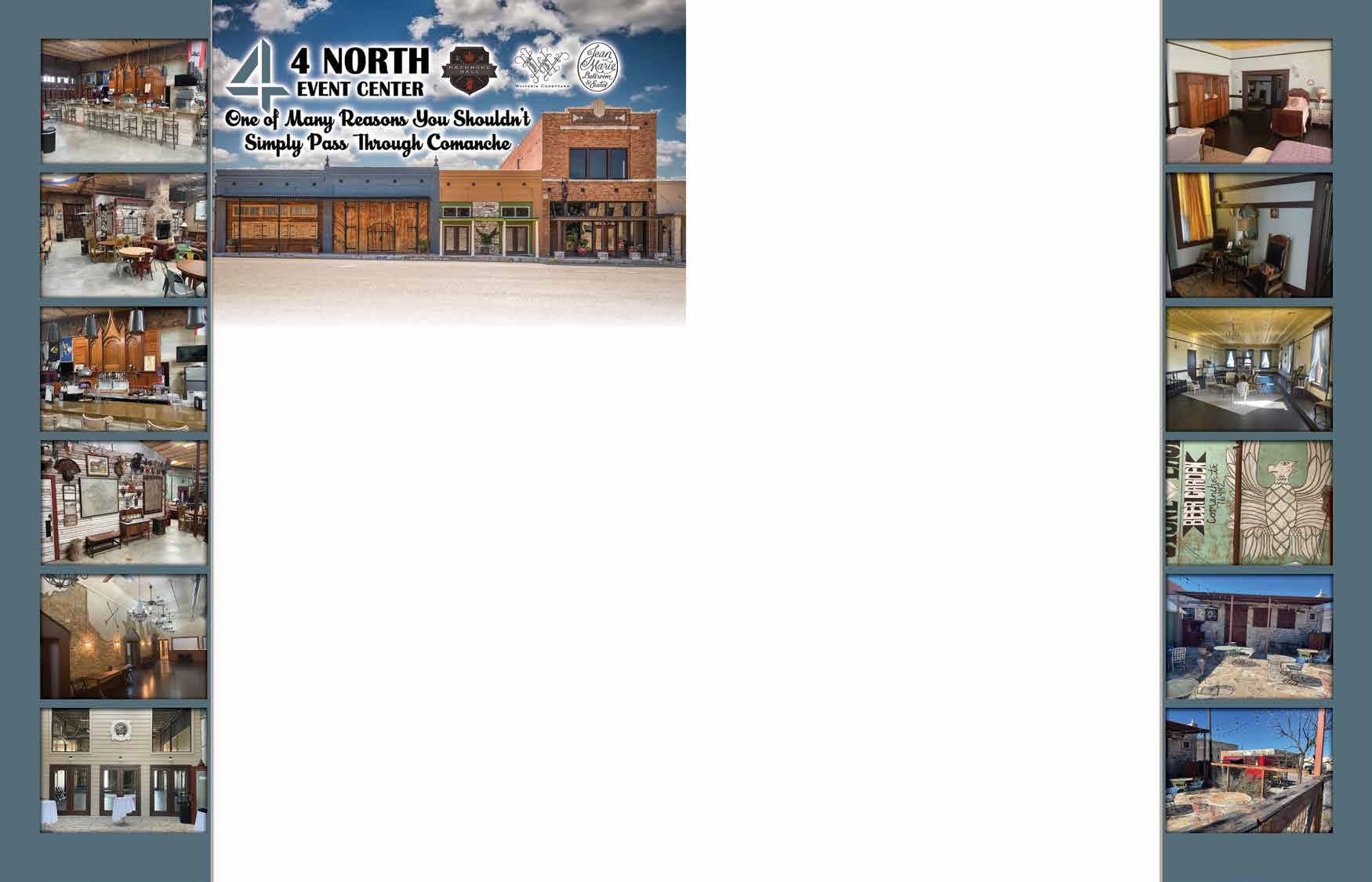 If you've had the good fortune to be in Comanche in the last few years, you may be familiar with the 4 unique businesses located on the northeast corner of the square, collectively and aptly named the 4 North Event Center, 4 North is comprised of The Stone Eagle, Wisteria Courtyard, Rathbone Hall and the Jean-Marie Suites. Together they create an all-encompassing event center catering to a variety of needs and tastes.