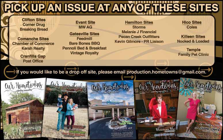 Copyright of photos go to Comanche Chamber, Hamilton Chamber, Hico Chamber, Texas Station and City of Gatesville respectively. If you feel so inclined send a few photos of your own