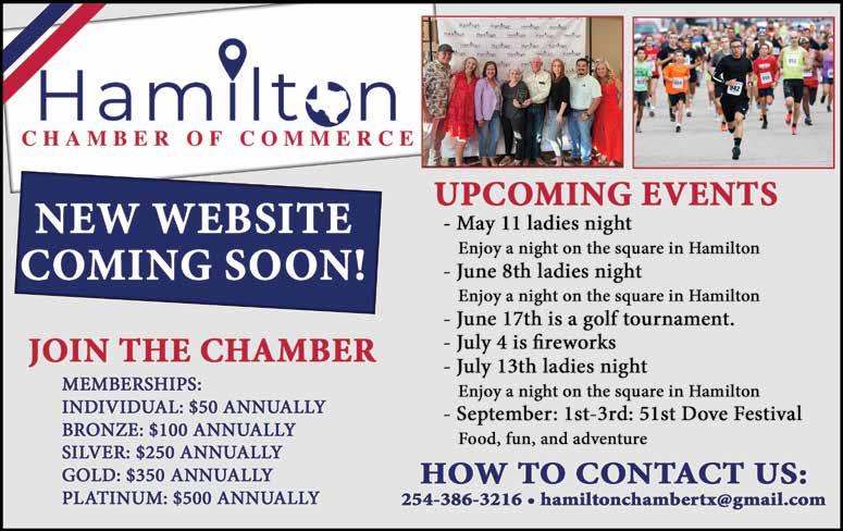 May 6 - Hamilton Fly-in 5K/10K at Hamilton Municipal Airport, 8AM. Register now for the annual Hamilton Fly-in 5K and 10K on Saturday, May 6, 2023. The race, benefiting the Hamilton Soaring Club, a nonprofit organization introducing high school students to aviation, will be managed by Race Day Event Services. Join us for an exciting cross-country run, music, and awards ceremony. Cub Scout Pack 311 will provide breakfast at the hangar for a free will donation. Pre-register to receive a race day t-shirt. The Chamber of Commerce is sponsoring the May-Days festival on the square, which will include live music, vendors, and kid’s activities in the downtown area. An hourly shuttle will be available from the airport to downtown. Arrive early and you can enjoy the Randy Rogers Band as they perform at the Grain on Friday Night.