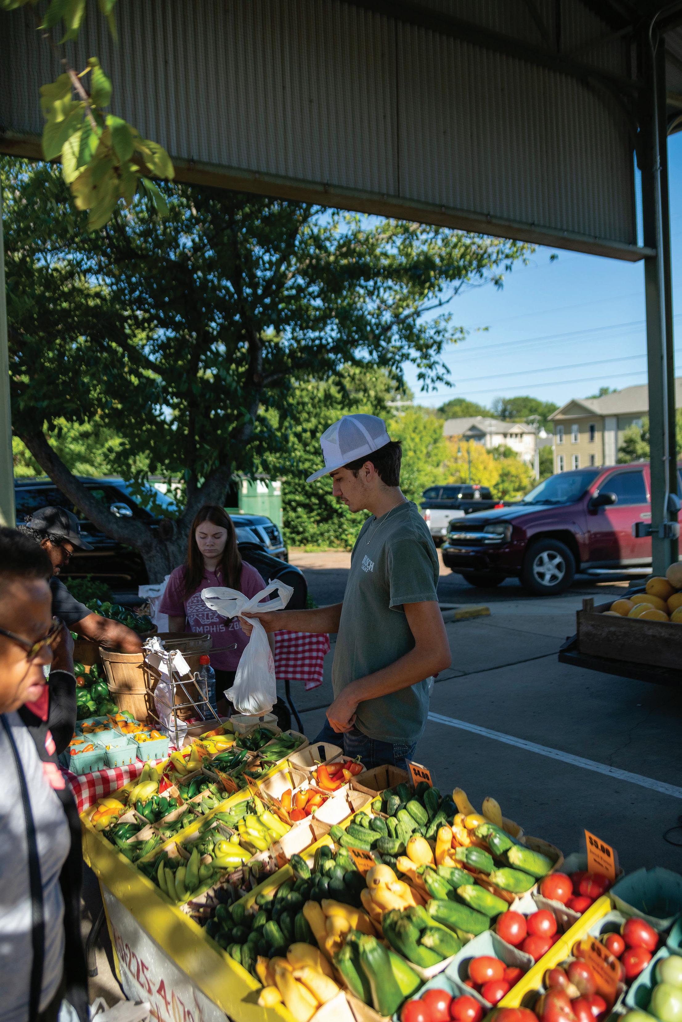 that both contrasts and complements the rich greens of the grass and trees of a West Tennessee summer. There isn’t much that exudes the energy of life quite like the experience of immersing yourself in the vitality of the Farmers’ Market.