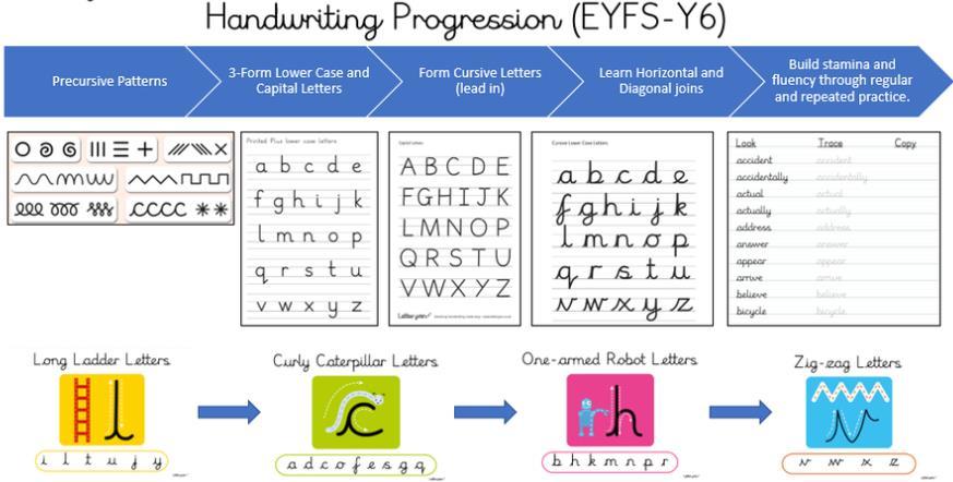 We are very proud of our pupil’s handwriting and take particular care in our cursive handwriting style. We use Letter-join’s on-line handwriting resource and progression as the basis of our handwriting policy as it covers all the requirements of the Early Years Framework and the National Curriculum and builds fluency and stamina for writing.