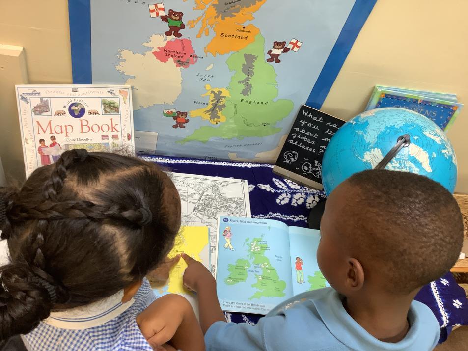 In our geography module, “Where in the World is Staines?”, we will be exploring what a map is and its different uses. The children will use a variety of mapping media, including atlases, globes, online or digital mapping media, as well as aerial images to identify major physical and human features of our school grounds, Staines and the wider area. They will apply this knowledge to complete simple fieldwork challenges around the outdoor areas and to construct or draw their own maps of imagined and real places. ln addition, we will develop our knowledge of the location of the UK and begin to learn the names of the four countries that are part of it.