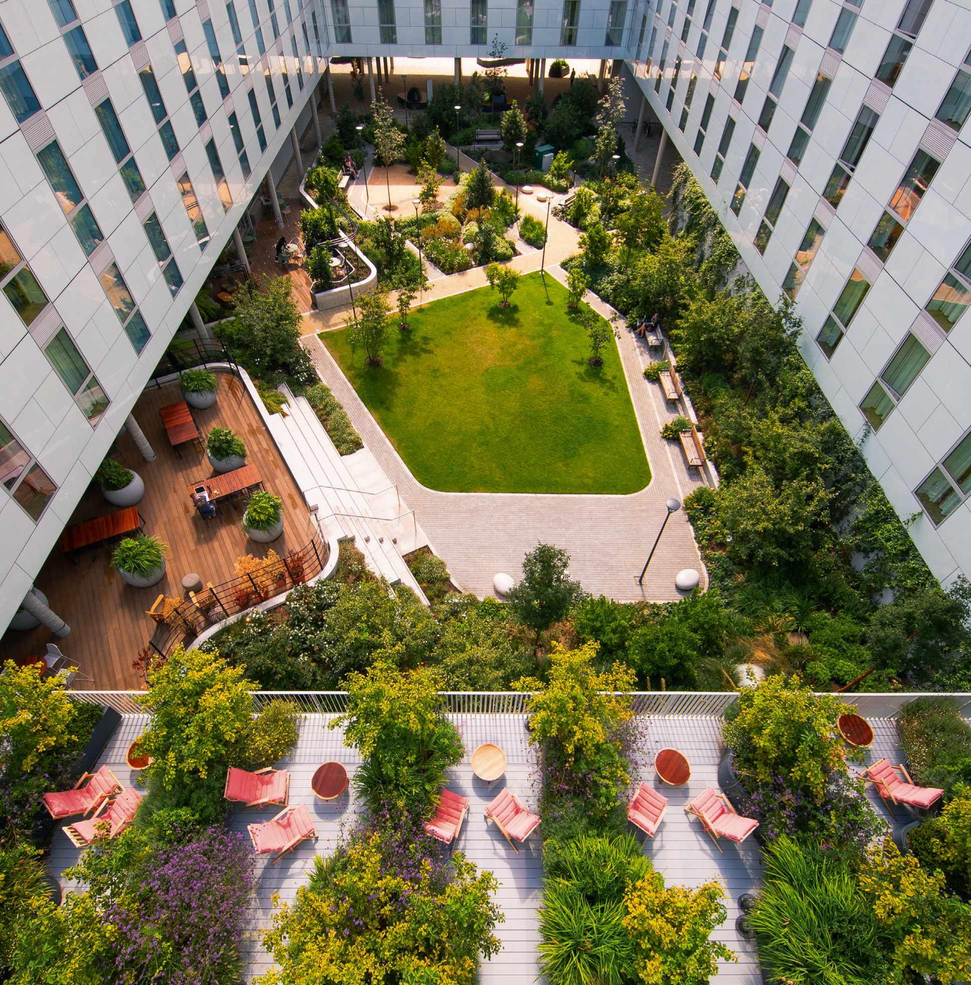 93 Designnews A public courtyard garden within a hotel complex in Cambridge, landscaped by Robert Myers Associates