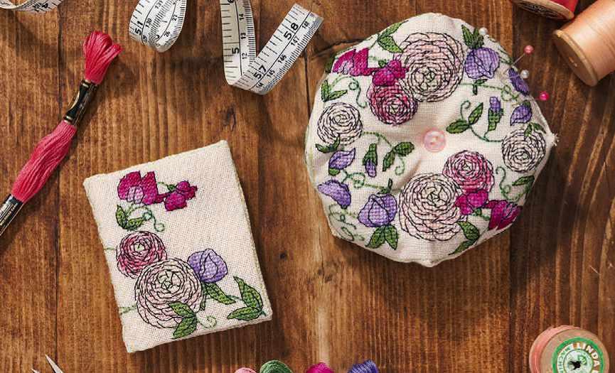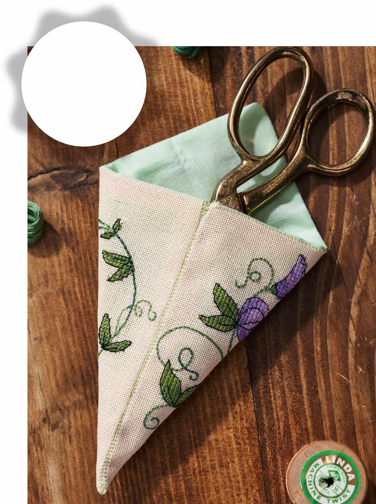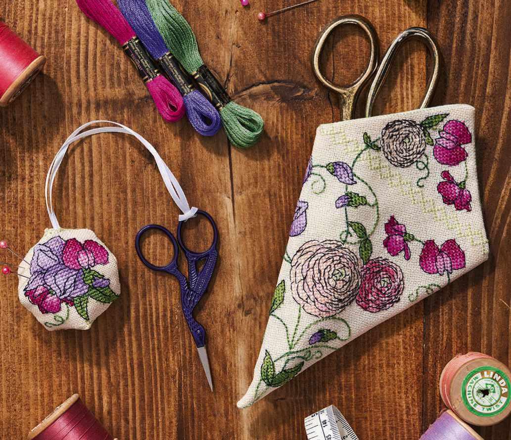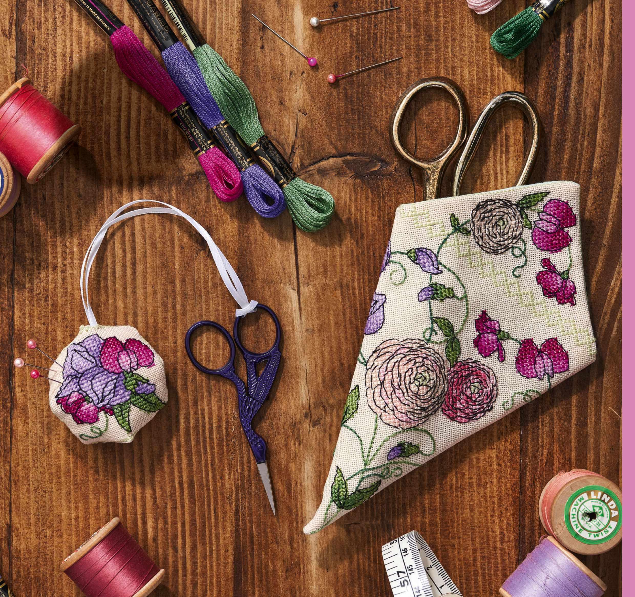 FABY REILLY Join in with part 2 of Faby’s pretty floral stitcher’s set. You can find the charts and easy-to-follow guides to making the scissor fob and case on page 47.
