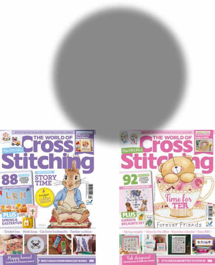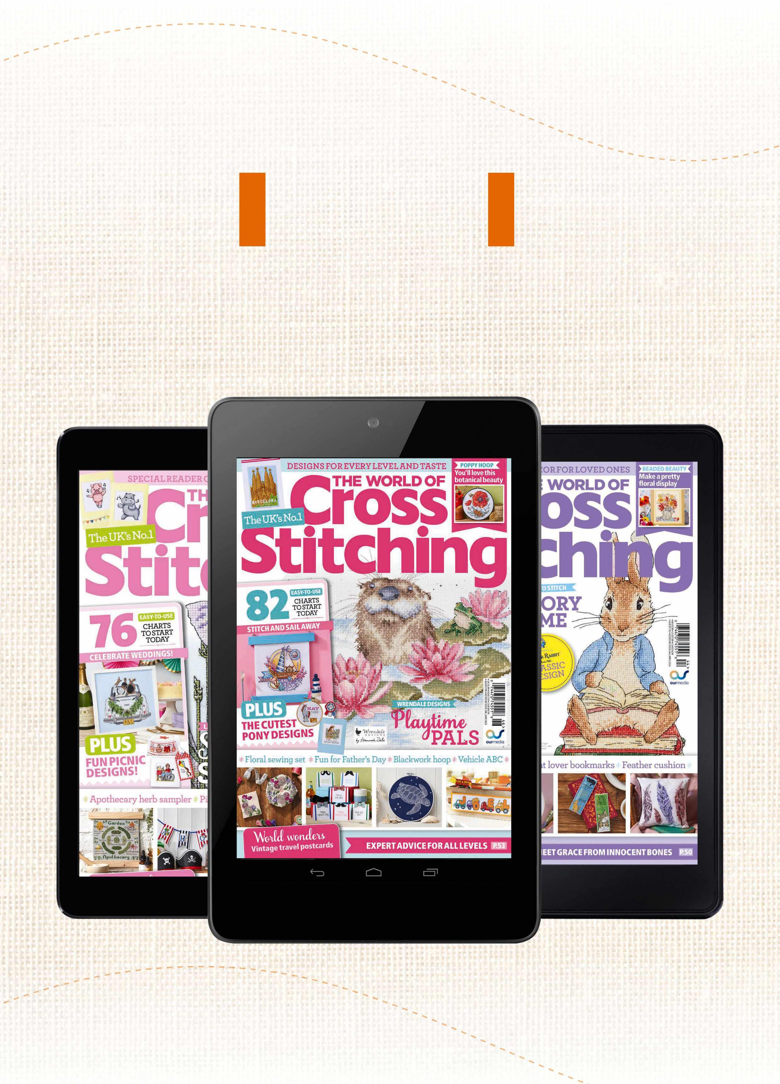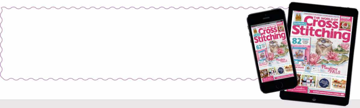 For the US/Canada: For subscriptions or back issue orders please visit www.ourmediashop.com or call 888-941-5623. Lines are open 9am to 5.30pm EST For enquiries relating to your subscription, please visit www.ourmediashop.com/contactus, call us on the number above or write to us at The World of Cross Stitching, PO Box 401, Williamsport, PA 17703. For ROW: Order online at www.ourmediashop.com or call 01604 973745. For enquiries, please visit www.ourmediashop.com/contactus or write to us at The World of Cross Stitching, PO BOX 3320, 3 Queensbridge, Northampton NN4 7BF, UK.