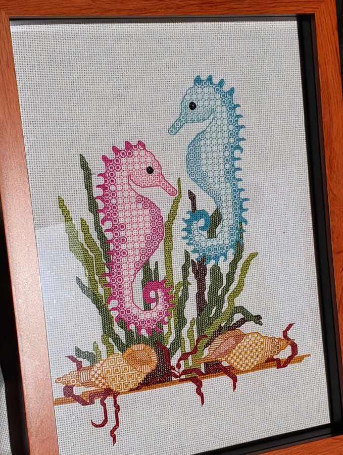 I remember first seeing cross stitch when a medical secretary I met through work was selling cross stitch cards. There was a cute ballerina that I bought for a friend’s birthday. I was fascinated by how she made it and she told me all about it. Not long after, I bought my first kit, which was a motorcycle card for my husband’s birthday.