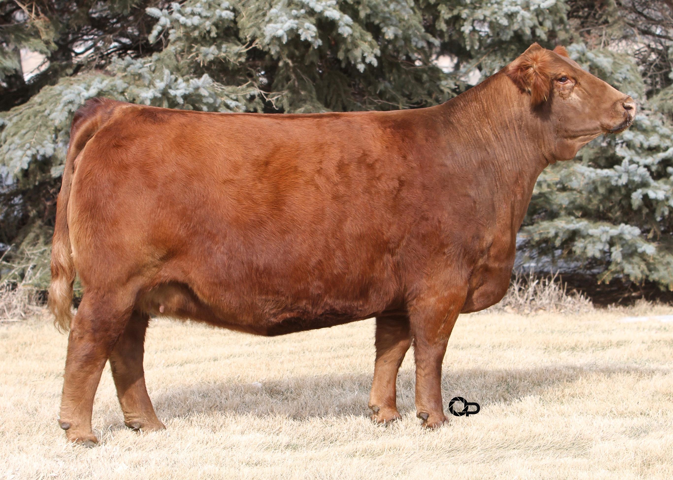 When I worked for SDSU, I coached a young lady that went to work for a Red Angus outfit in Oklahoma. She called one Spring and asked my thoughts on one of the bulls at Jesse Weber’s. I told her there was a Brando son over there that I thought was an outlier for the breed when it came to his power and dark red color. Fast forward a few years and here resides a direct daughter, out of a Damar Next cow that I mean is one unique Red Angus. Beautiful headed and built, punchy from behind, and I think she’ll make a very nice show heifer and a killer cow!