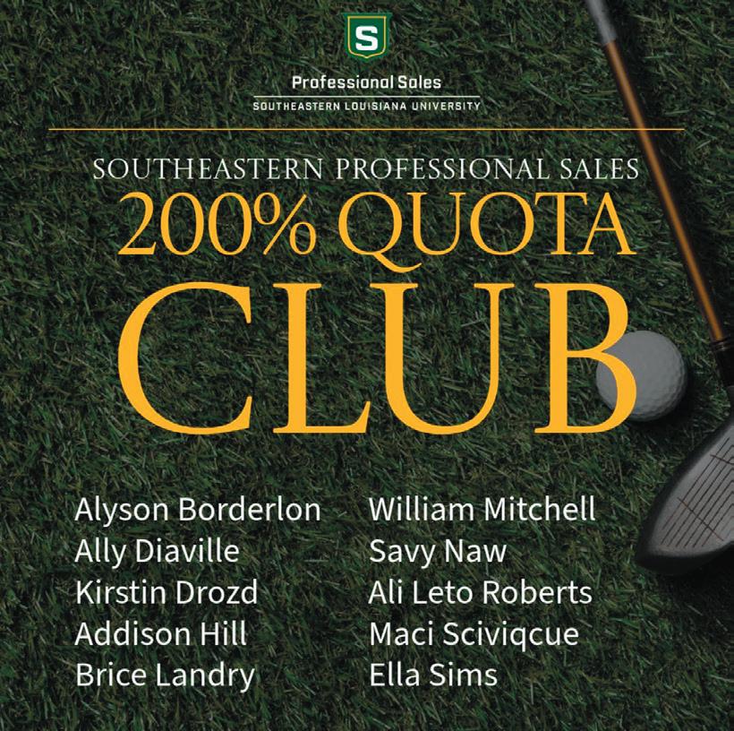 Victoria Hickey Boudreaux, Cintas "I just have to brag about how incredible the sales program is! I recently went on my first business trip to New Orleans, where we completed three days of training with extensive role-playing exercises. I was the youngest participant by several years and the only one who had just graduated from college with no prior experience. Thanks to my training, I earned the MVP award for the trip! You all are doing amazing things at Southeastern, and I’m so grateful for the preparation and support that set me up for success!"