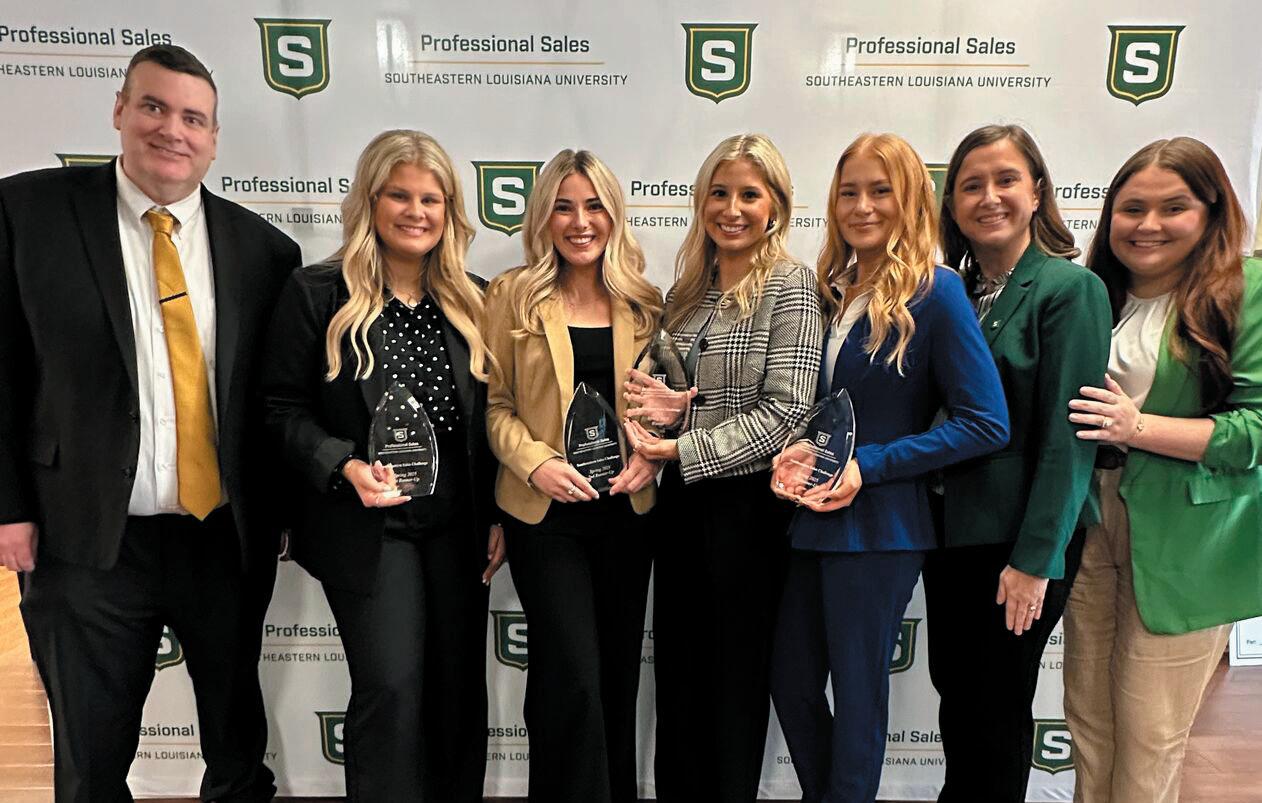 This Spring, the Eta Tau chapter has hosted several member meetings, a new member initiation, and guest speaker meetings. Further, Dr. April Kemp took a group of students including Sophia Ruffino, Philip Garcia, Emma Marengo, Alyson Bordelon, Zander Diaz, Lucy Allen, and Hezekiah Chatelain to the PSE National Convention in Covington, Kentucky. In the Pro-Am Sell-A-Thon, four Southeastern students, Marengo, Bordelon, Garcia, and Chatelain made it to the semifinal round, and Chatelain made the final round. Chatelain finished as the winner of the PSE National Pro-Am Competition as well as the top video call nationally. He was also named the winner of the PSE Pro-Am and won a $1500 scholarship plus a brand new suit from Tom James. He is the first competitor in PSE history to achieve all possible points in this competition, finishing #1 in all four categories. Eta Tau was also named Most Improved Chapter and is poised for continued success and student engagement moving forward.