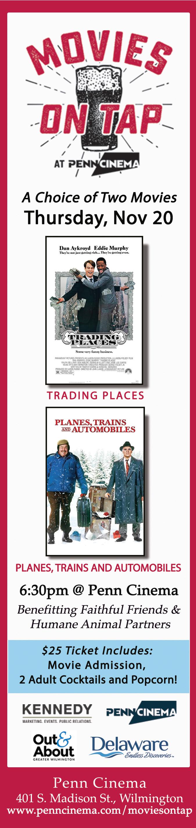 —Want to lend a hand to senior pets (and all the others still waiting for homes)? Mark your calendar for Movies on Tap on Thursday, November 20 at Penn Cinema on the Riverfront in Wilmington. The event benefits Humane Animal Partners and Faithful Friends, with two film favorites to choose from — Trading Places or Planes, Trains and Automobiles — plus signature cocktail tastings from Tito’s Handmade Vodka. Tickets are just $25, making it an affordable way to toast to the season of giving. Learn more at HumaneAnimalPartners.org.