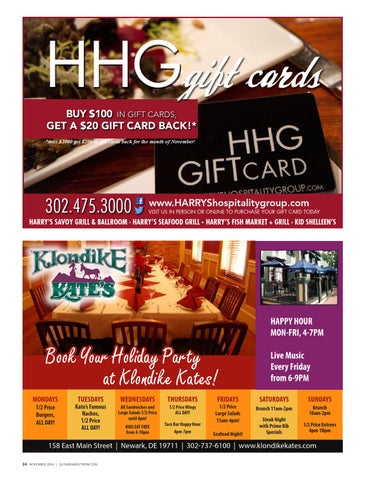 158 East Main Street | Newark, DE 19711 | 302-737-6100 | www.klondikekates.com 3. Lobster Bake and Raw Bar every Friday 24 NOVEMBER 2014 | OUTANDABOUTNOW.COM