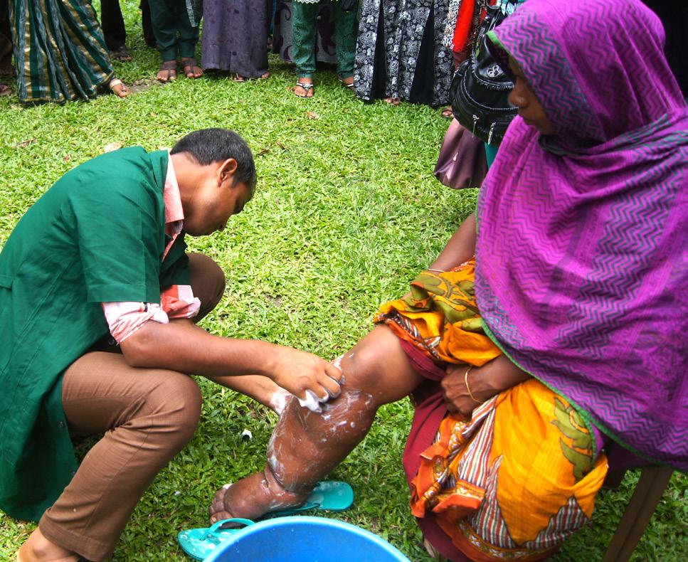 FIGURE 5.15 | Patient presenting lymphatic filariasis (elephantiasis) symptoms. Bodily deformities associated with lymphatic filariasis add to the stigma of those infected.