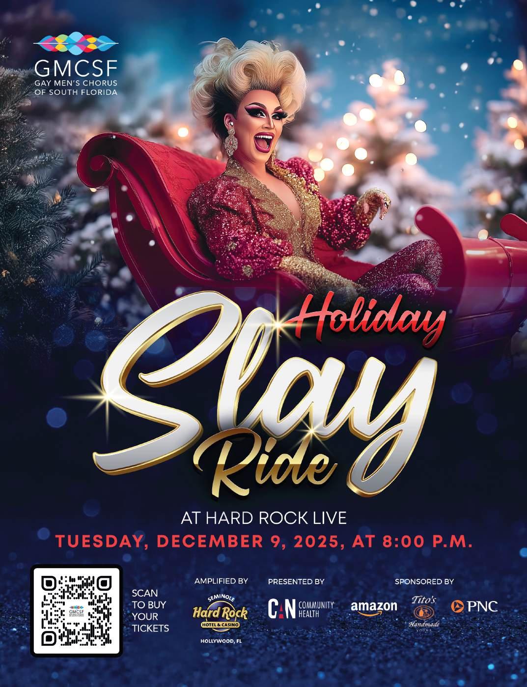 The season begins Tuesday, December 9, 2025, with Holiday Slay Ride, a bold, camp-filled celebration at Hard Rock Live. This high-energy concert puts a fresh twist on holiday favorites, including three hilarious new parodies: “Pink Christmas” (a makeover of Irving Berlin’s classic), “Hey Big Santa” (adapted from Broadway’s Sweet Charity), and a festive reimagining of “Holding Out for a Hero.” Also featured are a stirring rendition of “The Little Drummer Boy” and the pop sparkle of Kelly Clarkson’s “Underneath the Tree.” VIP ticket holders will enjoy an exclusive pre-show reception in Salon West with cocktails, bites, and a chance to win a Hard Rock gift basket, along with complimentary access to Seminole Hard Rock’s private Holiday Extravaganza at the Guitar Pool following the concert.