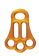 Multipurpose hot-forged aluminum plate for use with single, double and twin ropes. Its main applications are self-locking belaying for one or two seconds and abseiling. The central rib acts as a fulcrum on the connector and allows the recovery of two people, even secured to ropes of different diameter, either simultaneously or separately. In the case of a fall, only the rope subjected to the fall blocks, leaving the other free to slide.