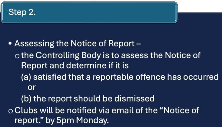 Below is the process of the new Reporting & Tribunal procedure. Umpires who make a report will be supported when & where necessary in the process. Any questions or queries, please contact Jason McNiece.