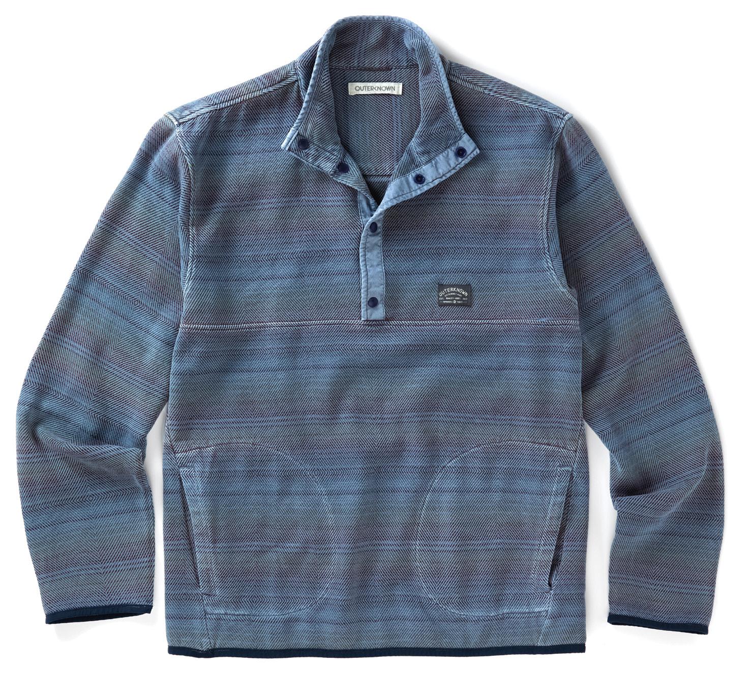 Introducing the Blanket Snap Popover—a fresh take on an outdoor classic made with purpose. For 2025, we set out to give new life to leftover materials in our inventory, staying true to our mission of keeping everything we make in circulation. Instead of using traditional plastic fleece, we crafted this popover from our Blanket Shirt’s signature lofty twill weave, offering a slightly roomier fit for easy layering. Offered in a solid black colorway and another featuring our best-selling Mojave sunrise pattern, overdyed in a rich blue—the two are an ideal combo in our plush Blanket Shirt weave. We also incorporated our new industrial label on the chest—the perfect finishing touch this nostalgic style was calling for. THE BLANKET SNAP POPOVER IN FRENCH BLUE MOJAVE STRIPE $198