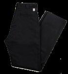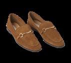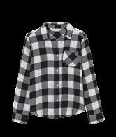 Pantalones negros, camisa y saco de cuadros, mocasines y lentes oscuros.