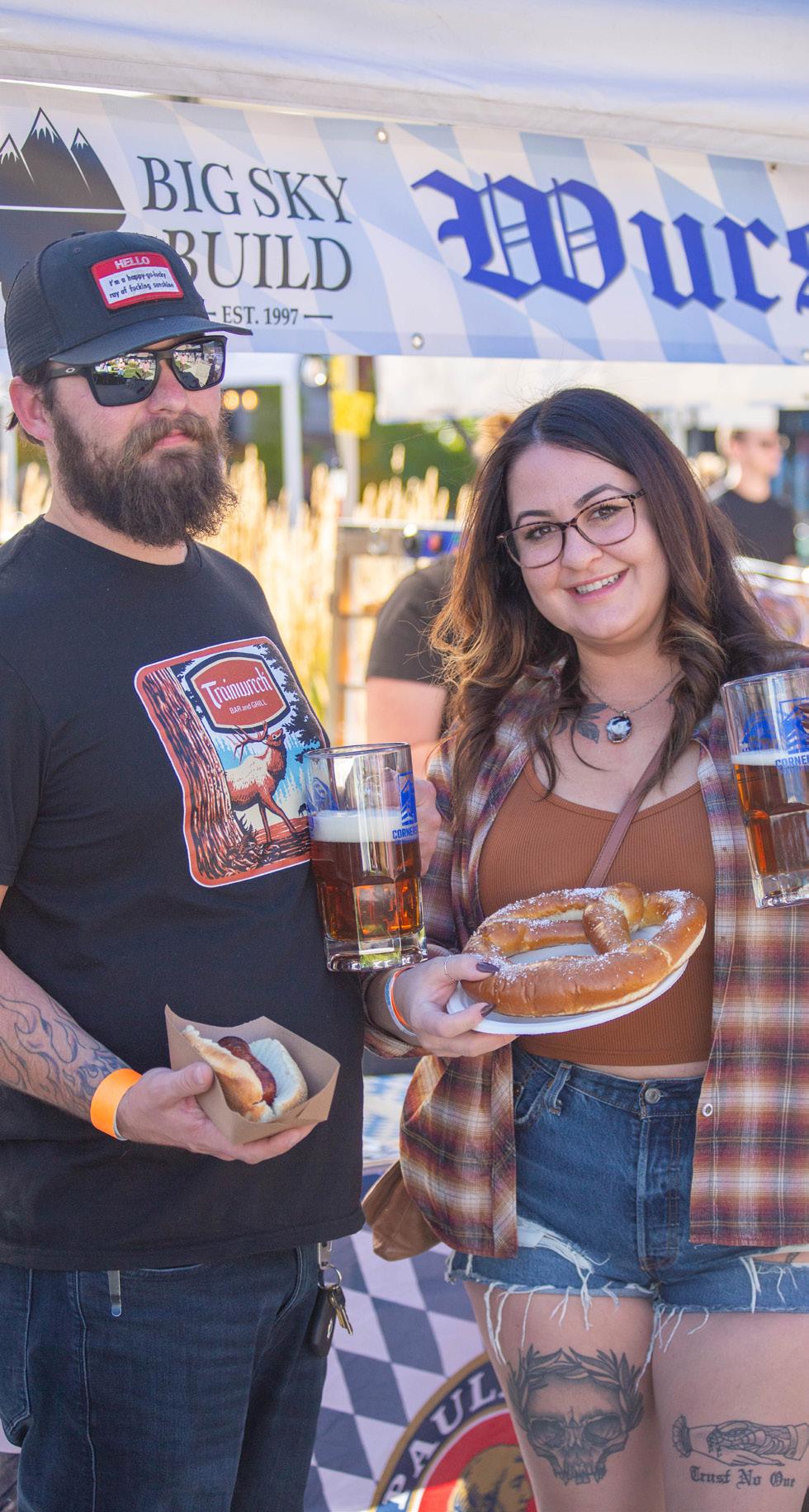 Dana and Larry Wikan, founders of Big Sky Oktoberfest, pose with steins before getting back to work at their third annual event on Sept. 27. PHOTO BY