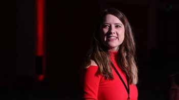 Kadie Neuharth smiles during her speech at the American Heart Association’s Go Red luncheon in February 2019. She attended the same event just two years prior when she was still pre-transplant and struggling with her heart.